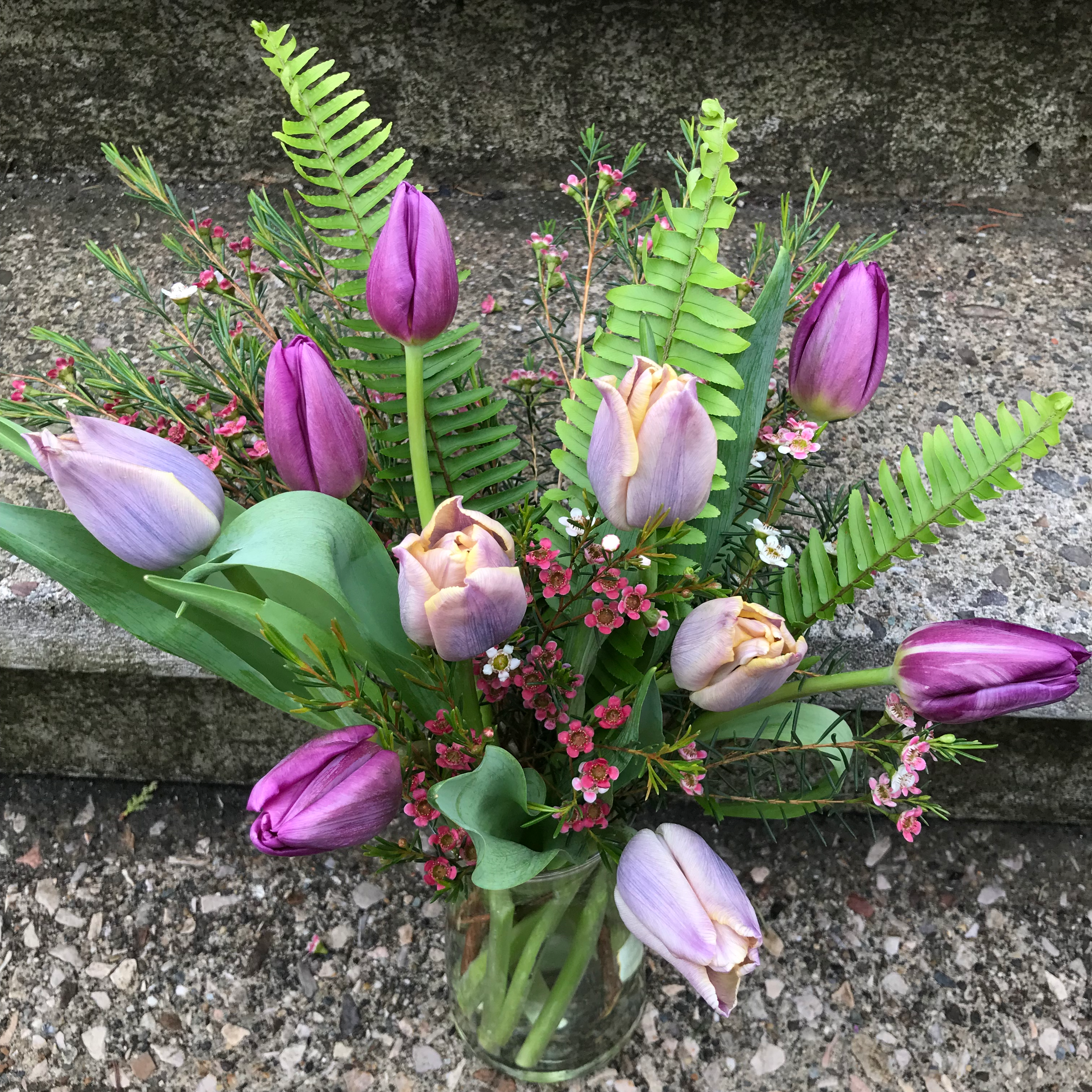 Share the love with this pretty bouquet of mixed tulips paired with foliage & fillers. *