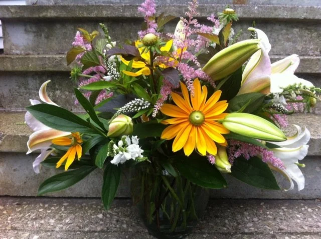 We use as much local as possible (viburnum, lilac, birch catkins, curly willow, crab apple blossoms, hellebores). We also love waxflower, matricaria, and dianthus….for a bit of wildflower whimsy!